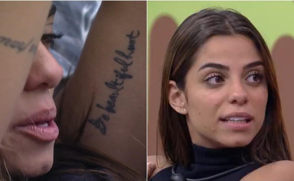 BBB 23: Key vira piada por erro na tatuagem: “Não lê“. Imagem: Reprodução Gshow.