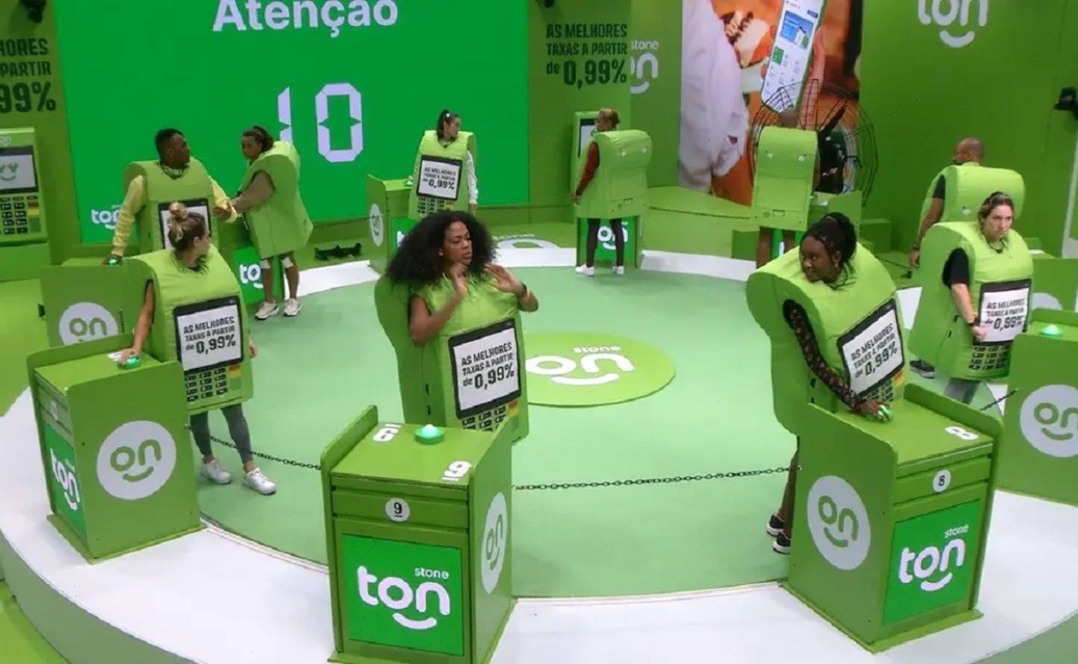 Tadeu, então, pediu que todos escolhessem suas posições. “Importante manter o botão acionado!”, disse Tadeu duranta a já tradicional rodada teste. Assim que o jogo começou para valer, Marvvila e Amanda foram eliminadas. “Escorregou minha mão quando fui trocar”, disse a primeira. Já Amanda alegou que se confundiu no começo da rodada.