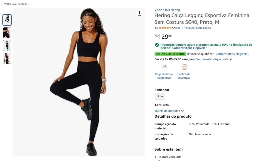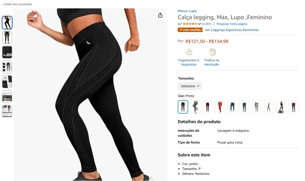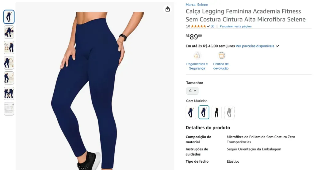 Opções de calça legging em oferta na Amazon