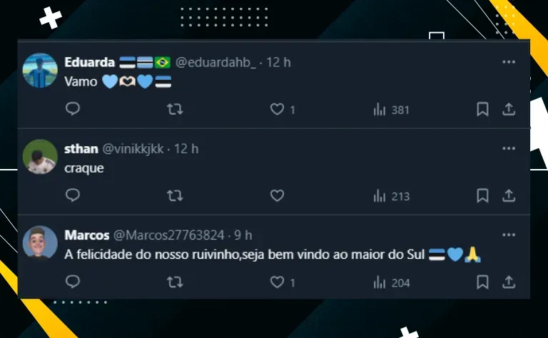 Por fim, apesar de já ser um atleta de 32 anos e que está na metade final da carreira, sua chegada ao Grêmio gera alta expectativa. A tendência é que ele jogue ao lado de Mathías Villasanti. Veja a repercussão após o desembarque: