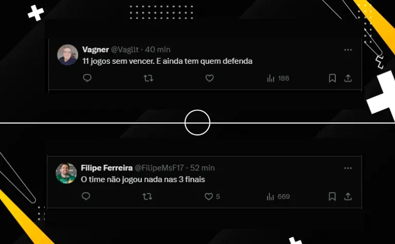 “O time está com um a mais, mas o nosso treinador não pensa em tirar os três zagueiros, isso é inexplicável“. Outro atleticano opinou algo parecido na rede social: “técnico de uma tática só! Não tem repertório para mudar e colocar o time mais para frente“.
