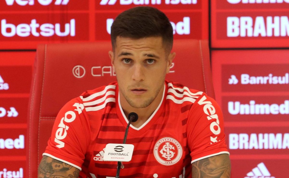 Fabricio Bustos em entrevista para o Canal do Internacional – Foto: Internacional