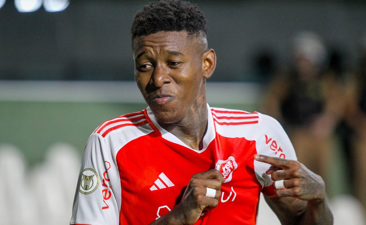 Vitão comemorando em partida com Internacional. Foto: Lucas Gabriel Cardoso/AGIF