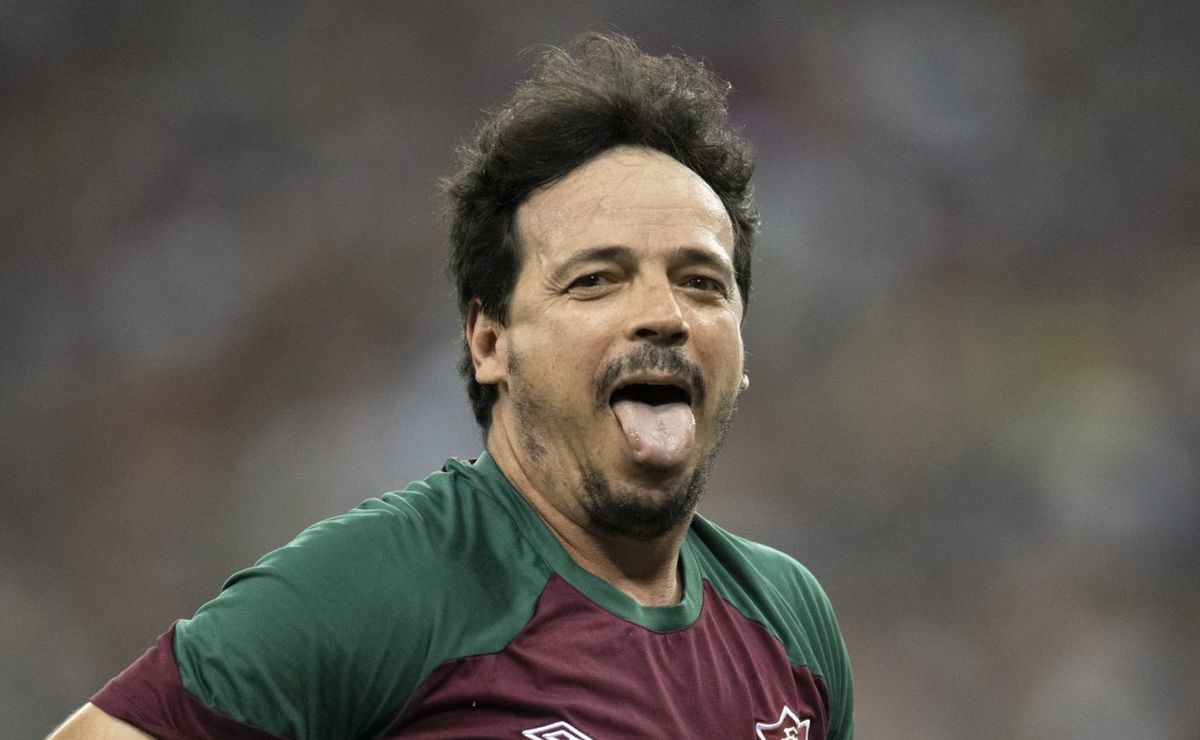 John Kennedy jogador do Fluminense comemora titulo com Fernando Diniz tecnico da sua equipe apos a partida contra o Boca Juniors no estadio Maracana pelo campeonato Libertadores 2023. Jorge Rodrigues/AGIF