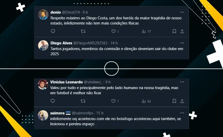 O tema agitou a torcida nas redes sociais, que lamentou muito o fato de Diego ter caído muito de produção durante a temporada. Ao todo, ele disputou 24 partidas e marcou oito gols, sendo seis no estadual.