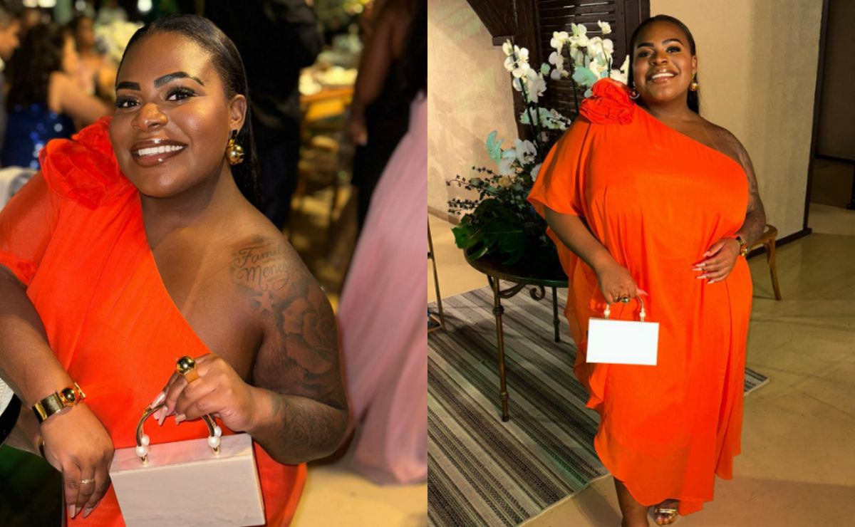 No seu perfil no Instagram, Jojo Todynho surgiu em um registro em que a funkeira está em um vestido laranja intenso de um ombro só. Além de compartilhar algumas fotos da cerimônia.