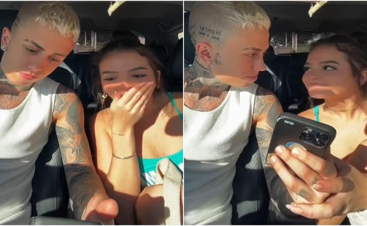 A atriz publicou um vídeo ao lado do cantor, vendo o celular dele com mensagens de pessoas que se interessaram pelo artista