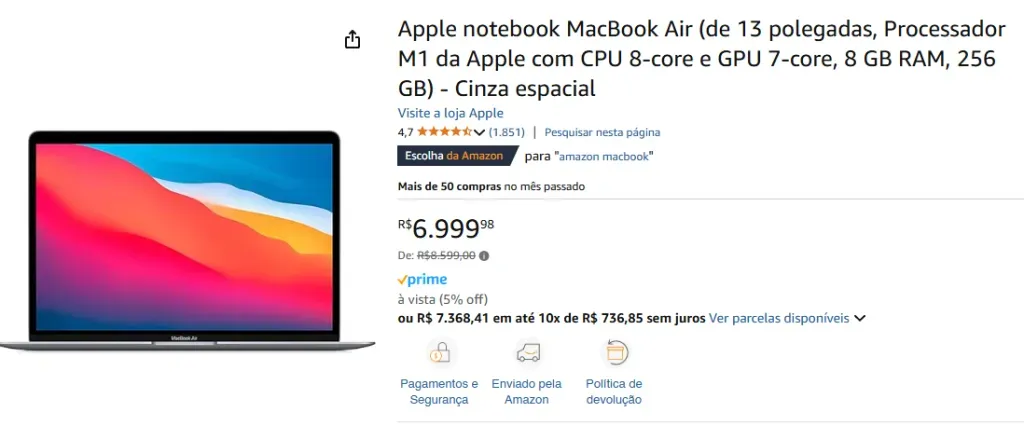 Ou seja: investir em um MacBook Air, seja o M1 ou o M2, é garantir um equipamento de alto nível, com satisfação garantida e muita praticidade. É isso que você quer? Então vem que tenho ofertas pra te mostrar. Vamos escalando nos valores conforme o produto e sua especificidade.