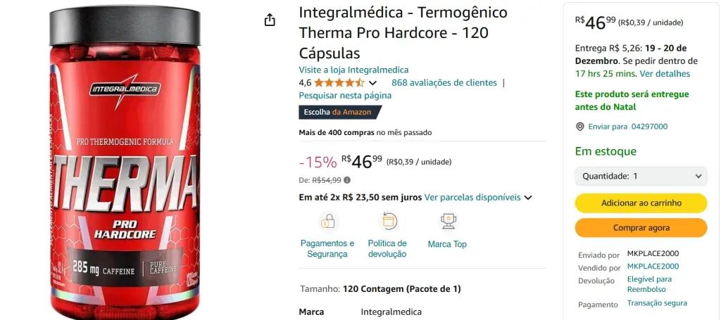Ou há ainda a terceira via, com o Thermo Pro Hardcore da Integralmédica, também com 60 cápsulas. Então, se você planeja reduzir seu percentual de gordura, a dose com 285 mg de cafeína deve ajudar bastante. A ação rápida desse termogênico é pensada para quem faz treinos com alta intensidade.