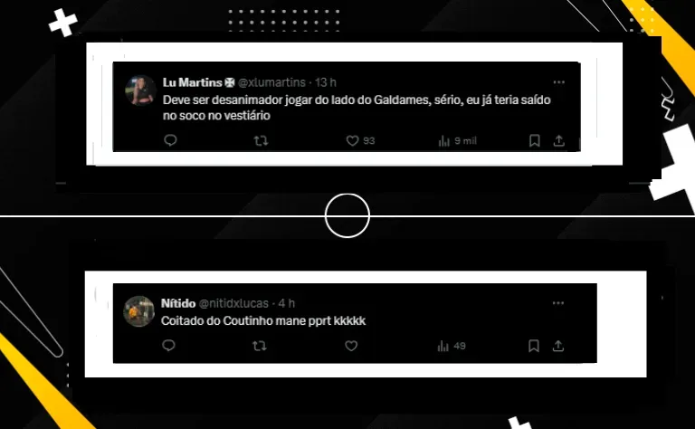 Houve ainda quem se mostrou bem contrariado com o futebol apresentado por Galdames: “É mais claro que a luz do sol que o empresário do Galdames certamente está nos bastidores pagando um bom dinheiro para o Paiva escalar o agenciado dele, dando minutagem e valorizando o passe dele para 2025 outro time acreditar que esse lixo joga alguma coisa. Tá na cara isso!“, afirmou.