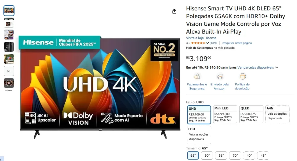 Com uma tela maior, você terá estará dentro de filmes, séries e jogos. Detalhes que antes passavam despercebidos vão ganhar vida com uma imagem nítida em alta definição, especialmente com a tecnologia 4K e HDR que estão sendo de praxe. Então, chega mais que temos boas indicações para você comprar bem na Amazon.