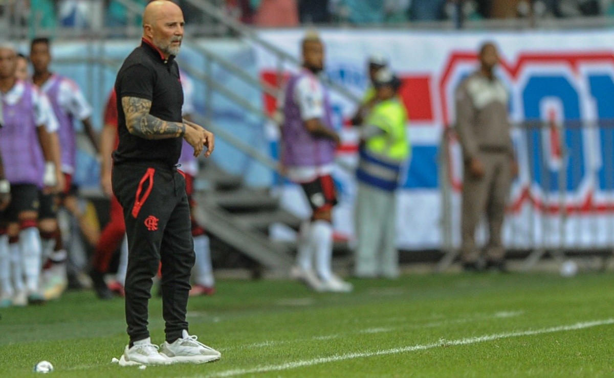 Treinador fez logo as cinco substituições no intervalo O Flamengo venceu o Bahia por 3 a 2 em um jogo muito disputado neste sábado (13), na Arena Fonte Nova. Matheus França, Gabigol e David Luiz marcaram para o Rubro-Negro, que mesmo tendo dois jogadores a mais na segunda etapa, acabou sofrendo uma pressão dos baianos. Além disso, chamou atenção as trocas de Sampaoli no intervalo, quando o treinador realizou as cinco substituições ao mesmo tempo.