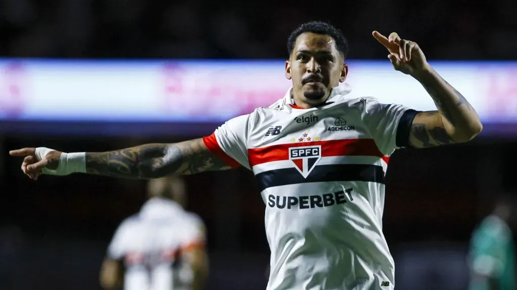 Luciano jogador do São Paulo comemora seu gol durante partida contra o Guarani no estádio Morumbi pelo campeonato Paulista 2025. Foto: Marco Miatelo/AGIF