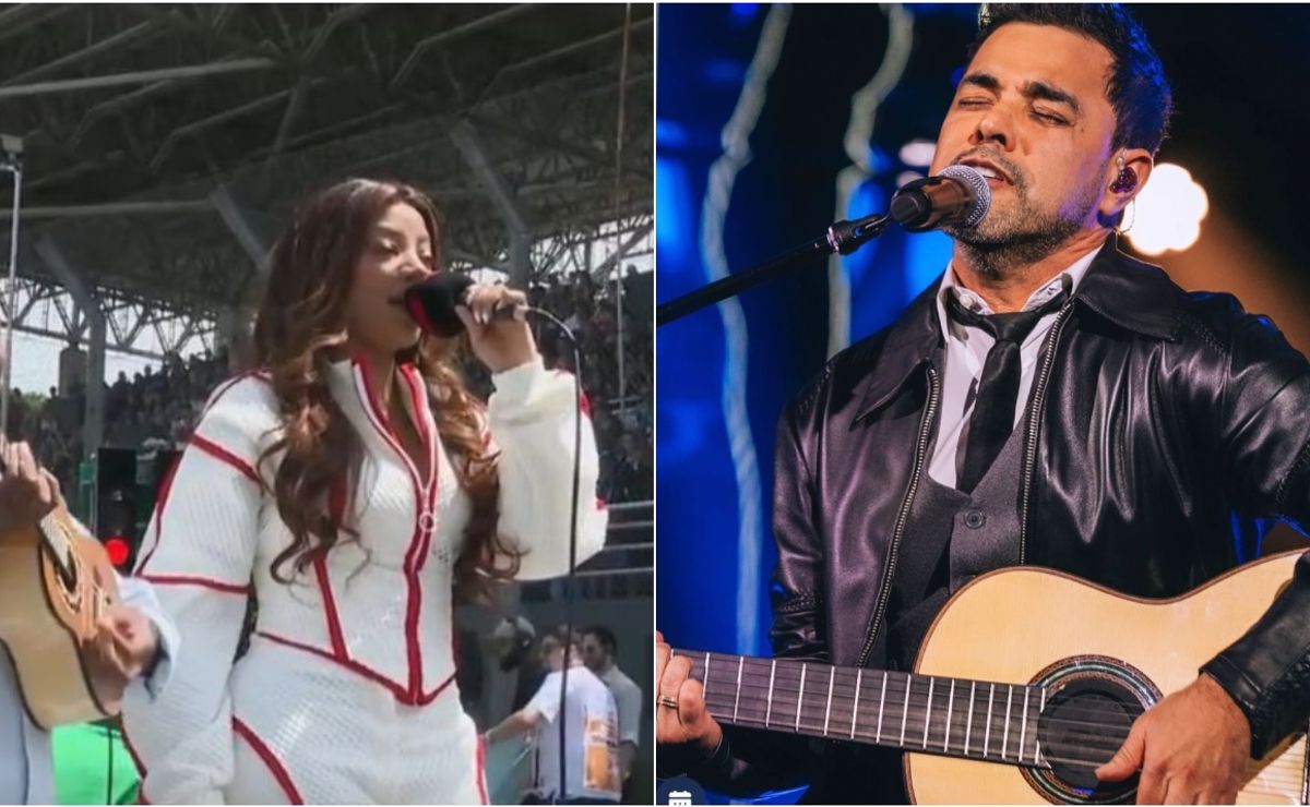 Zezé di Camargo cantando o Hino Nacional – Reprodução/Carlos Barroso